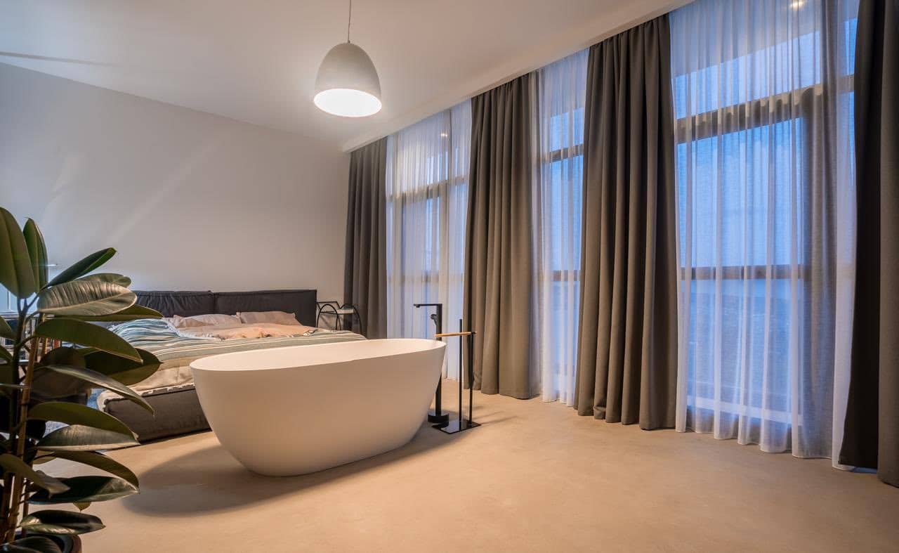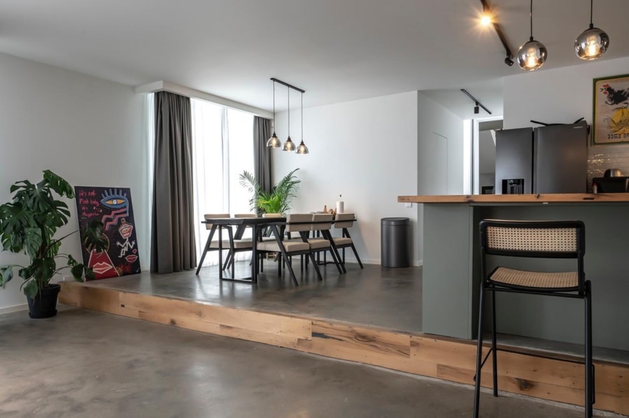 • Studio-style living area & kitchen with an open, airy layout